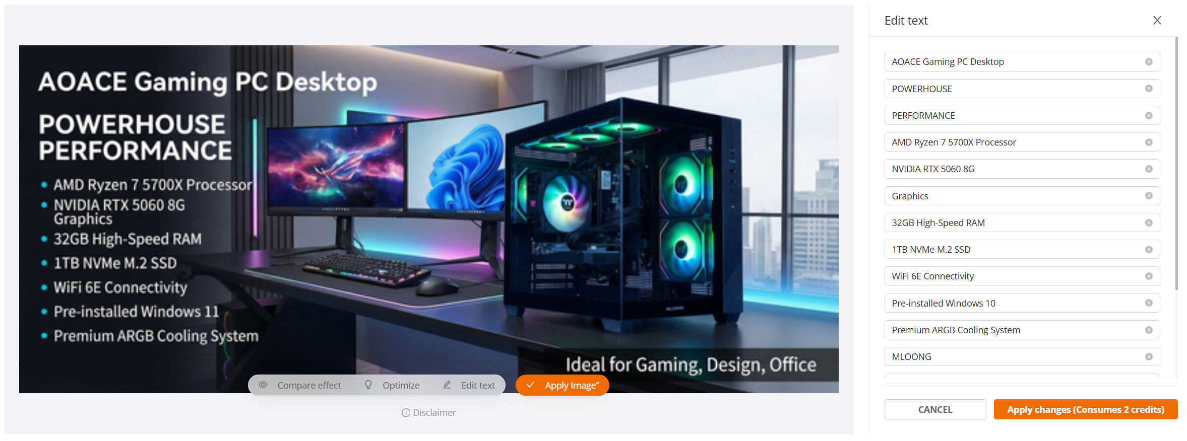 Sellers may modify the text and regenerate the image.