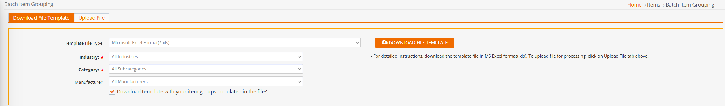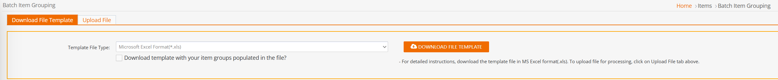 - Seller have the option to download a blank template or a template with item groups populated in the file.