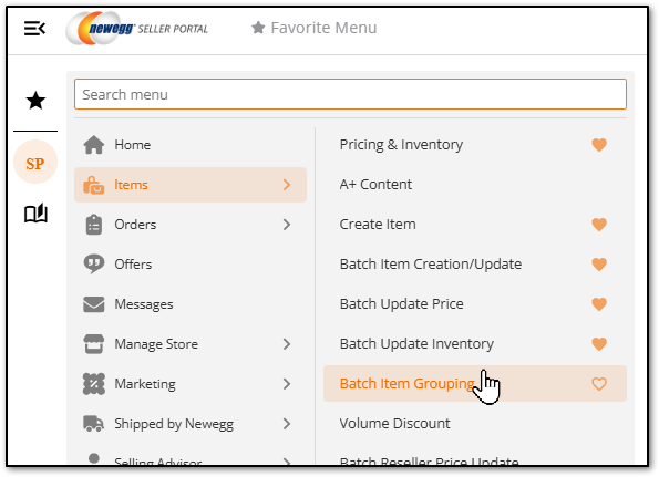 Go to Seller Portal, navigate to Items > Batch Item Grouping