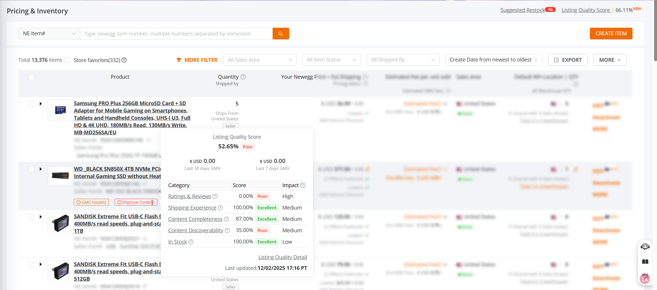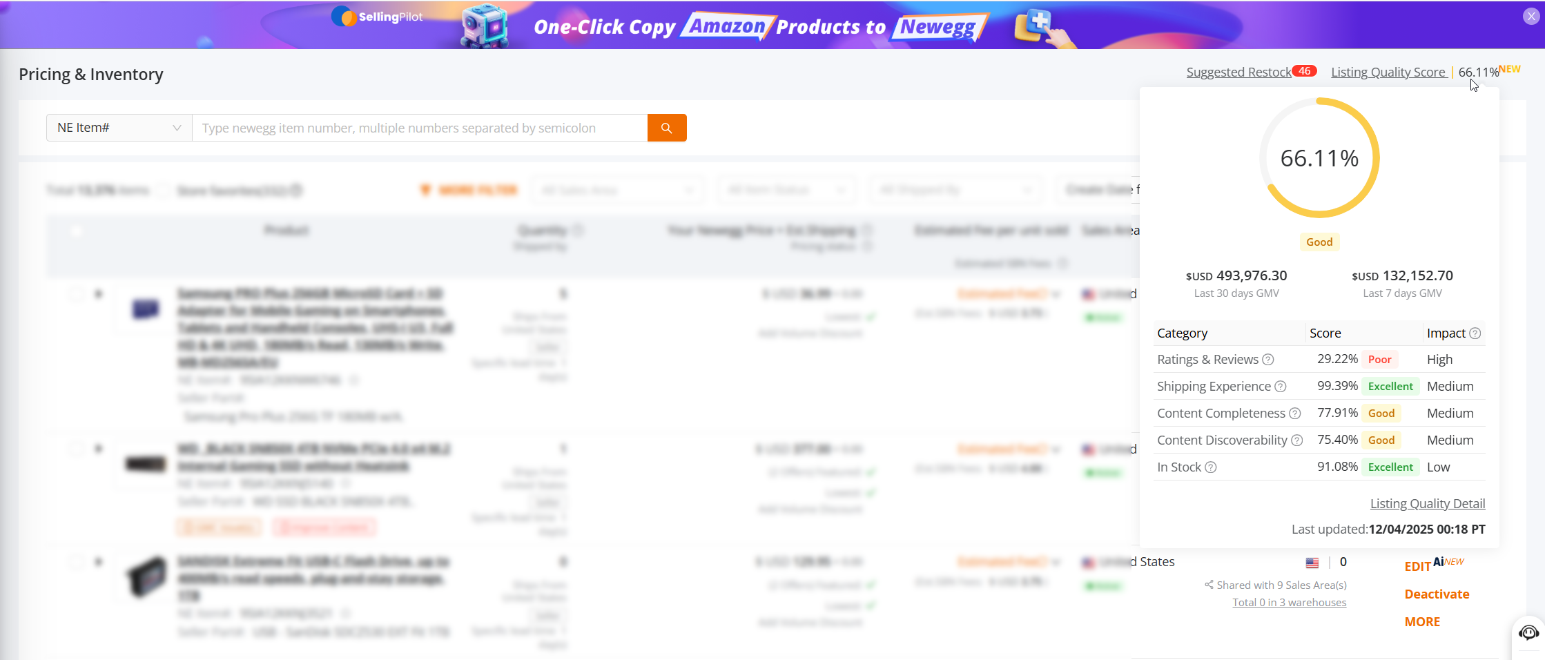 7. Viewing Listing Quality Score in Inventory & Pricing Lists